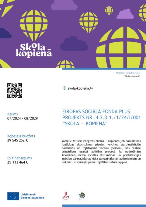 Eiropas Sociālā fonda Plus projekts "STEM un pilsoniskās līdzdalības norises plašākai izglītības pieredzei un karjeras izvēlei” (Nr. 4.2.2.1/1/25/I/001)