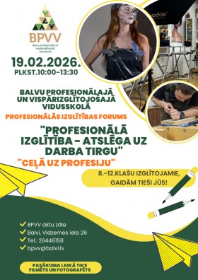 29. novembrī Balvu profesionālās un vispārizglītojošās vidusskolas Latvijas - Lietuvas pārrobežu sadarbības programmas projekta "Darba tirgus bez robežām (Mobilitāte)", projekta Nr.LLI-183, sadarbības partneri no Lietuvas Zarasai Lauksaimniecības skolas rīkoja izglītojošu izstādi/konkursu “Mis Mokykla 2018”. Šāds pasākums tiek organizēts jau 18. gadus. Izglītojošajā izstādē/konkursā piedalījās Elīna Kļanska no profesionālās izglītības programmas “Tērpu stila speciālists” 4. kursa un Agita Matule no viengadīgās arodizglītības programmas. Pārtraukumā tērpu kolekciju “Balvu muižas prominences” demonstrēja Alīna Logina, Viola Garā, Selīna Švāgere, Ksenija Hmeļova, kā arī konkursantes Elīna un Agita. Ar prieku pieņēmām uzaicinājumu piedalīties šajā pasākumā jo tā bija iespēja demonstrēt tērpus, kā arī mājas darba uzdevums bija izveidot tērpu no agrotīkla.